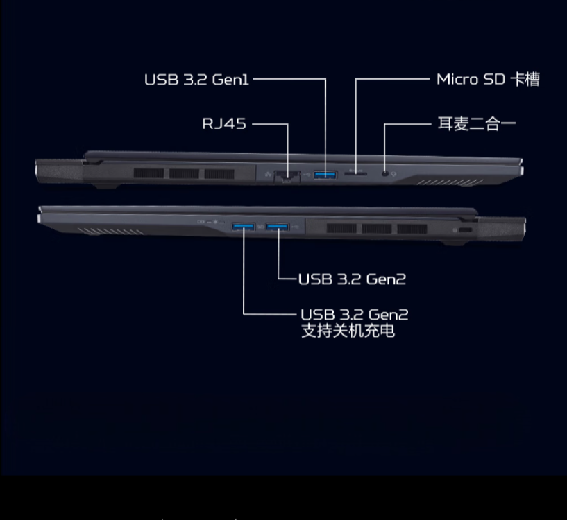 Cổng kết nối: | 1x Thunderbolt 4 1x USB-C 2x USB-A Gen2 3.2 1x USB-A Gen1 3.2 1x microSD 1x RJ45 1x HDMI 2.1 1x Jack 3.5mm 1x Power input |