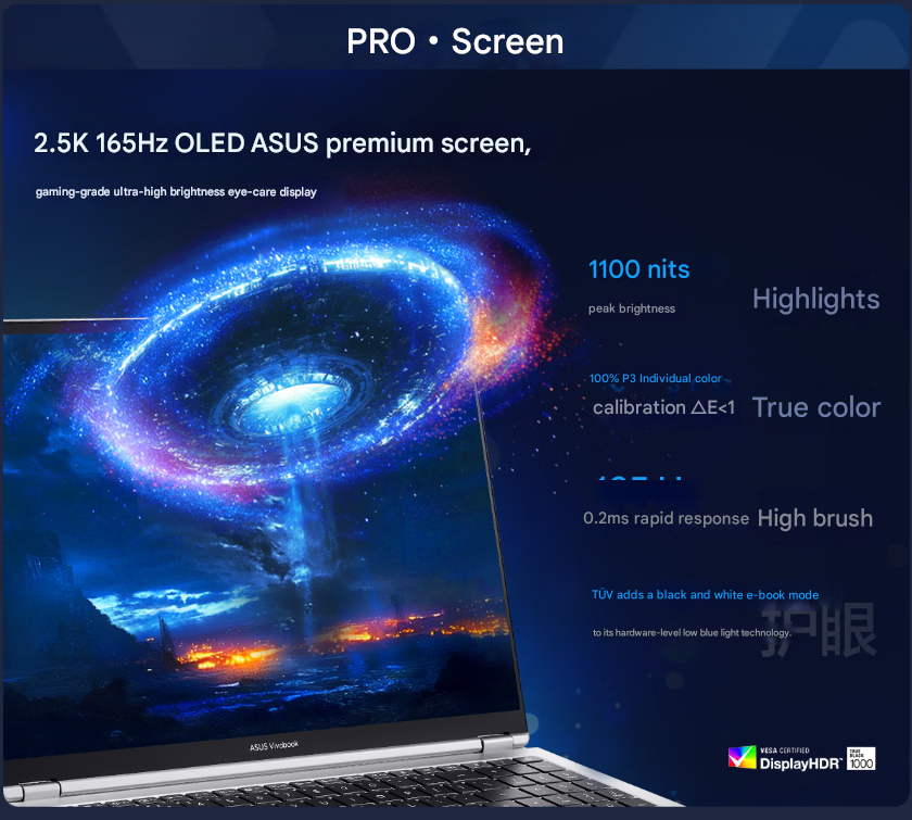 | Độ phân giải: | 16″ 2.5K (2560×1600) OLED, 1100nits,tỉ lệ màn 16:10, 165Hz, 100% DCI-P3 |